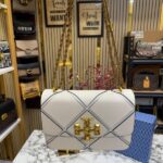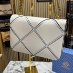 Tory Burch White Diamond Quilt Leather Eleanor Shoulder Bag With OG Box & Dust Bag