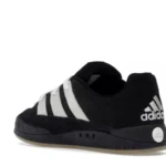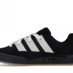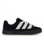 The Adimatic Human Made in Green by ADI has an upper made of smooth suede with broadened laces, a heart stitched on the shoe heel, and instantly identifiable tri-stripes on each sidewall. The ADI emblem is also engraved at the sneaker heel. The shoe has durable gum-rubber outsoles and sawtooth midsole grooves underfoot, enhancing comfort.