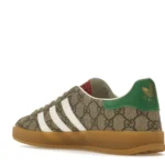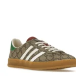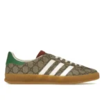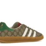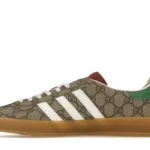 Introducing the ADIDAS x Gucci Gazelle Beige GG Monogram sneakers, a true fusion of fashion and sportswear. Crafted with the utmost precision and quality, these sneakers not only look incredible but also provide superior comfort. The iconic beige GG monogram pattern exudes luxury, making a statement