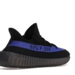 The YEEZY 350 V2 Dazzling Blue is reminiscent of the 2016 YEEZY 350 V2 Black Friday Pack. Instead of featuring a marbled pattern and sheer side stripe, it opts for a solid black Primeknit upper and blue side stripe with “SPLY-350” text. At the base, a muted Boost sole offers comfort and support.
