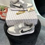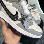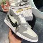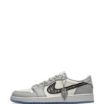 Air Jordan 1 Low Dior is a luxury sneaker that combines the classic Air Jordan 1 silhouette with high-end fashion elements. Released in collaboration with French fashion house Dior in 2021, this sneaker features a premium white leather upper with Dior’s signature grey Dior Oblique canvas and logo detailing. The design blends the iconic Air Jordan 1 Low shape with a touch of Dior’s elegance, resulting in a high-fashion twist on a classic basketball shoe. With its refined materials and exclusive collaboration, the Dior edition is highly sought after by both sneaker collectors and fashion enthusiasts.
