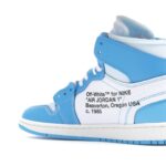 The Jordan 1 Retro High Off-White University Blue stays true to the iconic silhouette that has made the Air Jordan 1 a legend. Its high-top design offers ankle support and stability, while the perforated toe box ensures breathability. The signature Swoosh logo adorns the sides, a timeless symbol of athleticism and style.