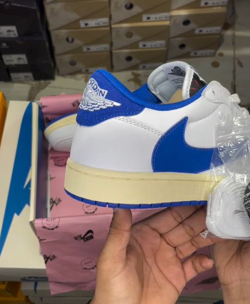 Air Jordan 1 Retro Low Fragment x Travis Scott Sail 2025 blends two of the most iconic collaborations into one standout sneaker. Featuring the classic Sail base complemented by blue Fragment accents and Travis Scott’s signature reverse Swoosh, this limited-edition release delivers premium style with collector appeal.