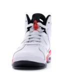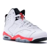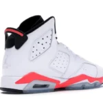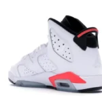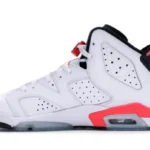 In 1991 the AJ 6 released in five original colorways, with two variations, an all-white and an all-black, utilizing Nikes famous ?infrared? color. The highly-coveted AJ 6 Retro White Infrared? saw its first retro in 2010, and again in 2014 to commemorate the 23rd anniversary of the shoes initial release date. The design features a white perforated upper in smooth leather with infrared accents throughout and a return to the reflective upper underlay, a detail not seen since the shoes original release.