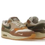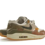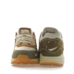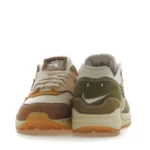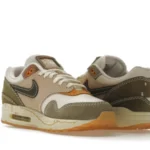 The Asia-Pacific exclusive Nike Air Max 1 Wabi-sabi (W) commemorates the eponymous ancient Japanese ideology that emphasizes beauty in every aspect of imperfection in nature. It features a cream textile upper with olive, brown, light pink, and orange Durabuck overlays. Loop stitching at the heel, frayed Swoosh embroideries at the toe, and aged marks at the sole align with the design’s ethos of beauty in the imperfect.