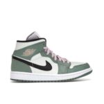 The women’s AJ 1 Mid Dutch Green, features two shades of green throughout. The upper consists of a mix of Dutch Green and mint leather overlays. Hits of pink are highlighted on the tongue tag, laces, and embossed Wings logo on the collar. A Dutch Green outsole wraps up this women’s exclusive AJ mid.