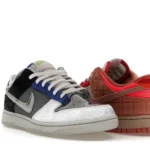 employed a creative mix of materials on this unique model. The dnk Low SP What The CLOT showcases a harmonious blend of colors, with various textiles pieced together in a stunning collage that pays tribute to previous CLOT collaborations. While the classic Swoosh adds a touch of familiarity amidst the diverse colorway.